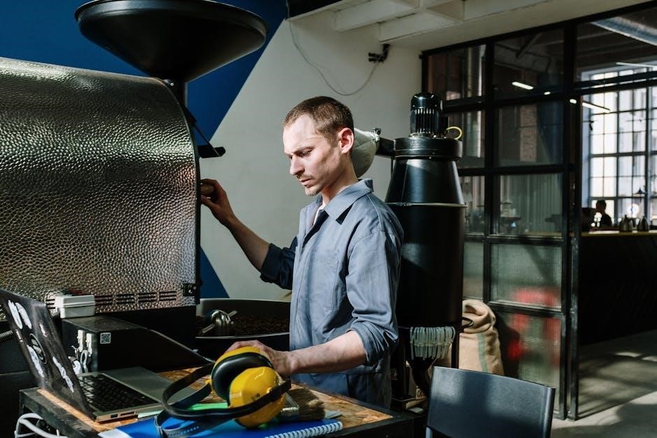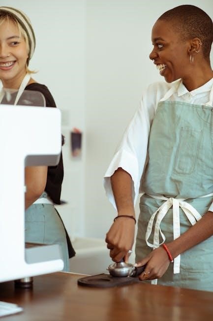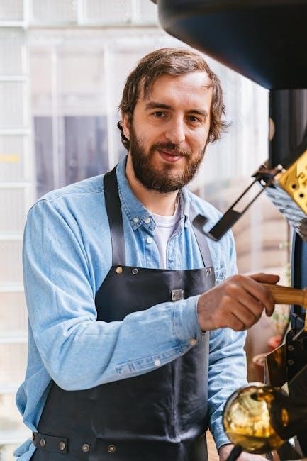 The manual also covers troubleshooting common issues, such as insufficient pressure or water leakage, offering step-by-step solutions. Safety precautions are prominently featured, emphasizing proper electrical grounding and avoiding contact with hot surfaces. Downloading the PDF allows for convenient access and offline viewing, ensuring assistance is always at hand when enjoying your daily brew.
